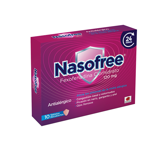 Alivio efectivo para la rinitis alérgica. Nasofree es un antihistamínico de segunda generación diseñado para actuar de forma específica y reducir síntomas como estornudos, congestión nasal, ojos llorosos y picazón en nariz, garganta y piel. Su fórmula avanzada minimiza efectos secundarios como la somnolencia, brindándote alivio sin afectar tu rutina diaria.